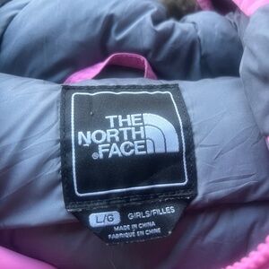 Keep her warm, cozy, and adventure-ready with this stylish Girls’ The North Face 600 down-filled jacket in a vibrant pink hue. Designed for both comfort and performance, it features a removable faux-fur–trimmed hood that adds a touch of winter flair while offering extra protection from wind and snow. A built-in belted waist creates a flattering, feminine silhouette and ensures a snug, secure fit.