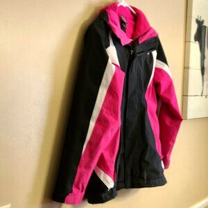 THE NORTH FACE JACKET GIRLS PINK BLACK WHITE LINER HOOD 14 16 GREAT CONDITION