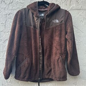 THE NORTH FACE Jacket Girls Size Large Hoodie Full Zip Fleece Furry Cozy Brown