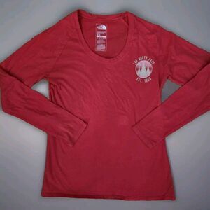 THE NORTH FACE Long Sleeve Classic Fit Tee Shirt Top - Adult Medium - Red -