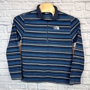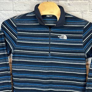 THE NORTH FACE Men Blue Stripe Fleece 1/4 Zip Pullover Sweater Size Medium Flaw*