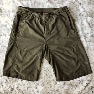100% Nylon lightweight quick dry shorts. Elastic. Drawstring waist. Side slit pockets with rear Velcro hidden pocket.