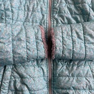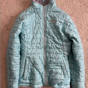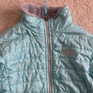 THE NORTH FACE Mint Gray Reversible FAUX FUR MOSSBUD SWIRL XL 18 Machine Washable, zip pockets