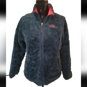 This stylish and cozy jacket from The North Face is a perfect addition to your wardrobe. With a mid-length cut and long sleeves, this jacket is perfect for casual occasions in fall, winter, and spring. The jacket is made of 100% polyester and features a faux fur/softshell fabric type for a comfortable fit. The pink/navy color combination is accented with an embroidered design to add a touch of elegance. The jacket is wind-resistant and features a full zip closure, lined and collared, with two pockets.