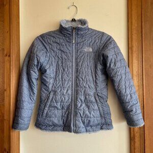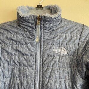 THE NORTH FACE Reversible Speckled Mossbud Swirl Blue Puffer Jacket Girl…