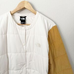 Fantastic collarless puffer jacket from THE NORTH FACE! Size XXL, worn once. Colors are called "Gardenia White & Antelope Tan", they are a slightly off white and caramel tan. Big front pockets. Tan parts are a mini corduroy