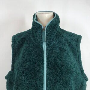 THE NORTH FACE - WOMEN'S XLARGE - GREEN SLEEVELESS FULL ZIP FLEECE SHERPA VEST