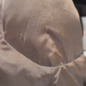 THE NORTH FACE Women's Puffer 550 Chocolate Brown Winter Jacket, size Large. Two outer zip pockets. One inner zip pocket. Lustrous sheen. Light wear.