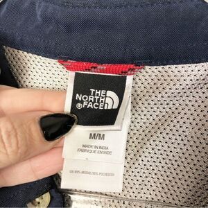 Nice dark blue button shirt by North Face. Long sleeves. Button cuffs. Some mesh lining. North Face tag on chest pocket. Neat material. Perfect for the outdoors. Great preowned condition. Mens size medium.