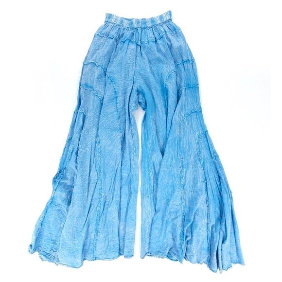 THE NU VINTAGE Upcycled Bell Bottom Wide Leg Pant 90s Beachy Boho Lagenlook Blue