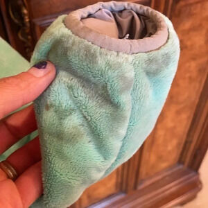 The North Face green puffy kids reversible jacket. The jacket has a lot of stains around the cuffs, please see picture for details. Also if you reverse the jacket there is a cut on the gray part of the jacket, please see pictures for details. This cute is super warm and comfy.