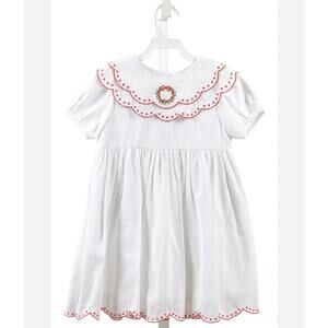 THE OAKS APPAREL WHITE DRESS WITH EMBROIDERED WREATH AND RED TRIM *SIZE 4T