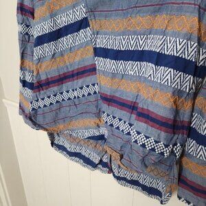 THE ODELLS Anthropologie Blue Geometric Open Back Blouse