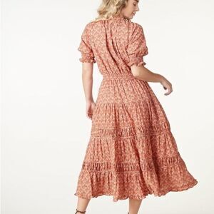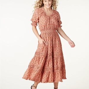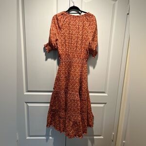 THE ODELLS Margherita Midi Dress - BRICK MULTI NWOT
