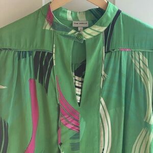 THE ODELLS WOMEN TOPS BLOUSES {$220} Poet Blouse Mystic Green Geometric Small