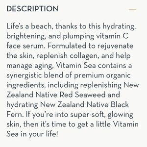Experience the rejuvenating power of Vitamin Sea Serum. Infused with New Zealand marine and Vitamin C, this clean serum revitalizes your skin for a radiant glow.