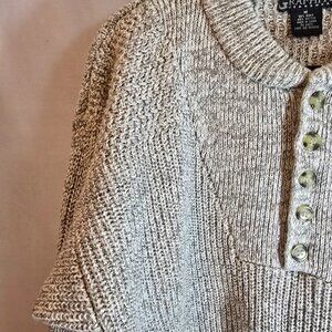 NAME: THE ORIGINAL GRAPHITE JEANSWEAR PULLOVER SWEATER SIZE MEDIUM RAMIE COTTON BLEND MEDIUM WEIGHT HEATHER GRAY HENLEY STYLE BUTTON UP DROP SHOULDER ROUND COLLAR BEAUTIFUL DESIGN 90s