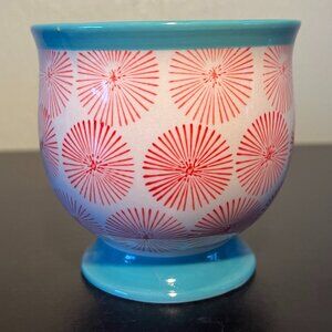THE PIONEER WOMAN Turquoise Pedestal & Red Starburst Off-White Ceramic Cup Mug