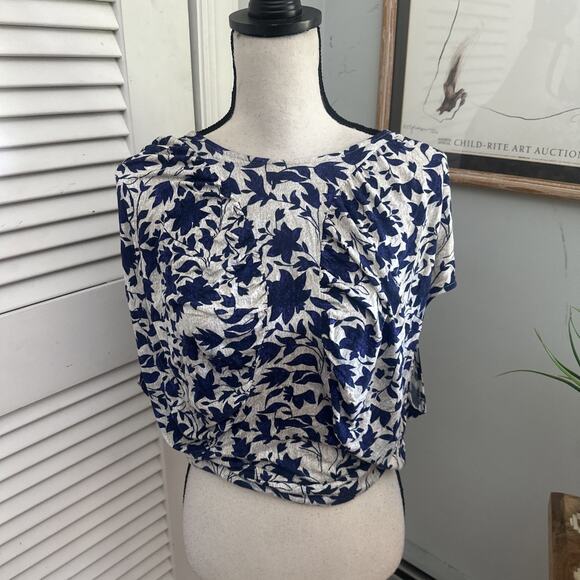 THE PODOLLS Womens Top XS Blue Floral Jersey Knit Casual Summer Relaxed Fit