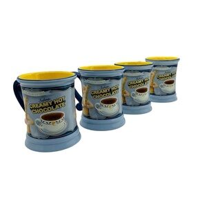 Adorable Polar Express "Authentic Creamy Hot Chocolate" mug. Light blue background with embossed images, dark blue handle and yellow inside. Mug measures approximately 4 1/2" tall,
