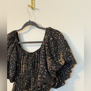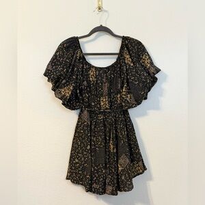 THE POST Anthro Fall Floral Bubble Sleeve Flared Mini Dress- Size Small