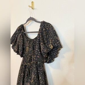 THE POST Anthro Fall Floral Bubble Sleeve Flared Mini Dress- Size Small. Excellent, like new condition!