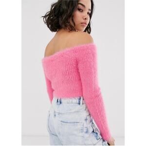 THE RAGGED PRIEST Glower Cardigan Top in Fluffy Knit Pink.