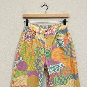 THE RAGGED PRIEST Sensory Dad Jeans Womens 24 Colorful Checkered Hippie Retro W10140