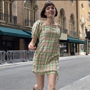 THE RAGGED PRIEST Urban Outfitters ~ Green & Pink Plaid Mini Dress ~ Size Small