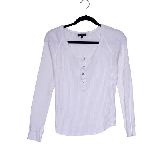 THE RANGE Boyfriend Henley Top White Waffle Knit Long Sleeves Casual Women's S