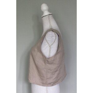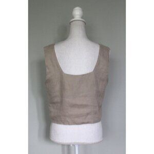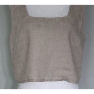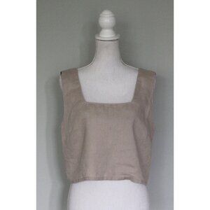 THE RESET R LABEL 100% Linen Beige Boxy Crop Top Tank, Size M Medium