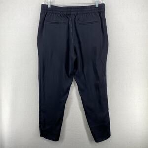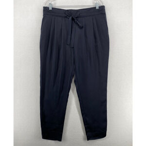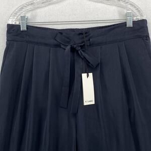 THE RESET R LABEL Pants L Satin Tie Trouser Pleated Tapered Navy Blue NEW