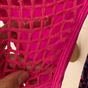 i love how flattering this fit is!!! only worn twice and handwashed. only flaw is the boob fishnetting has a little fray as in the last photo but there are no holes!