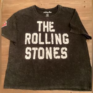 THE ROLLING STONES SIZE XL MINERAL WASH SHORT SLEEVE CROP BAND T SHIRT