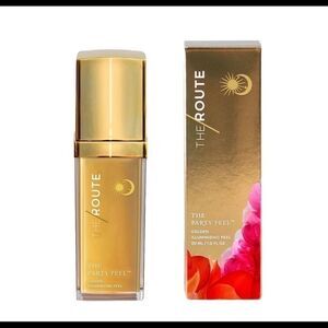 THE ROUTE The Party Peel is the ''secret'' to revealing your most radiant complexion without an appointment!This peel is a master blend of powerful, yet gentle acids enhanced byTHE ROUTE'S unique oxygen delivery system that bubbles on contact to provide exfoliation without visible peeling in most users.Formulated at the perfect pH for at-home use once to twice per week.Enjoy immediate, glowing💗With repeated use,you will continue to see improvement in skin's appearance:quality, texture and tone.