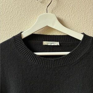 “Clelia sweater by The Row rendered in superfine merino wool and cashmere featuring a relaxed silhouette, round neck, dropped shoulders, long sleeves, straight silhouette, asymmetrical design, ribbed trims and tonal stitching. Made in Italy. Create a cool minimalist ensemble by styling it with wide leg pants, loafers and the label's Half Moon bag.