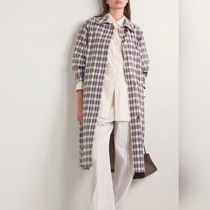 Classic designs in the hands of The Row always feel fresh and effortlessly cool. An adaptation of trench coats, this 'Tavishina' style is made from silk and cotton-blend poplin in a checked pattern and has a slightly loose shape with a neat collar and tabs at the cuffs. The full lining ensures smooth layering and adds a bit of weight.