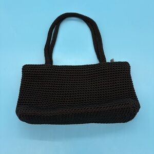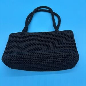 THE SAK Classic Black Crochet Double Strap Small Zippered Shoulder Bag Purse