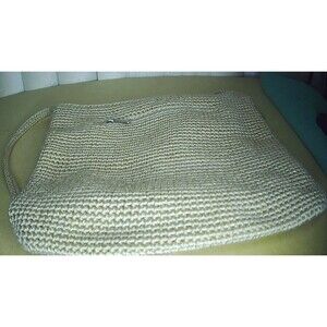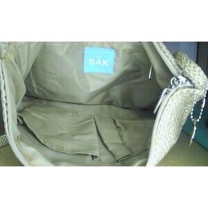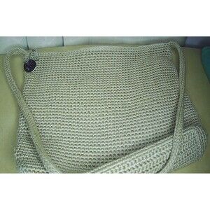 THE SAK Crochet Tan Gold Shoulder Bag Purse Knit Zip Handbag Woven 11x2x10