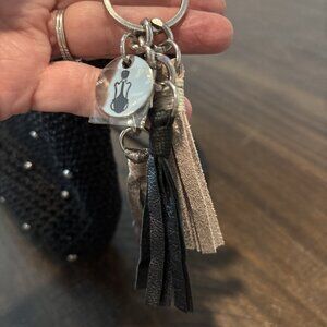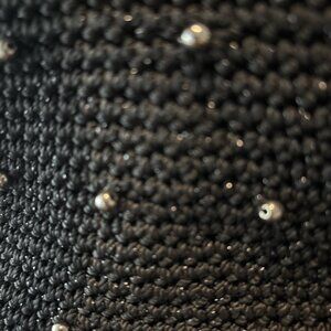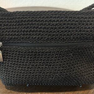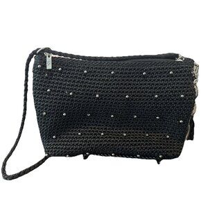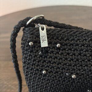 THE SAK Hand-Crocheted Black w/Silver Beads Convertible Crossbody Bag/Clutch