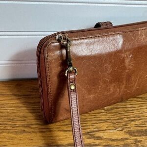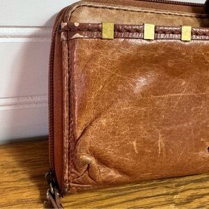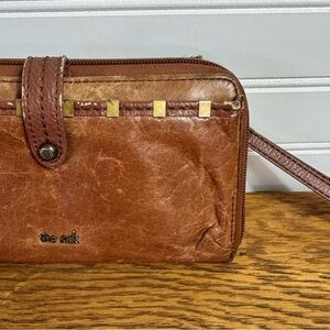 THE SAK "IRIS" TAN LEATHER SMARTPHONE WRISTLET WALLET CROSSBODY BAG