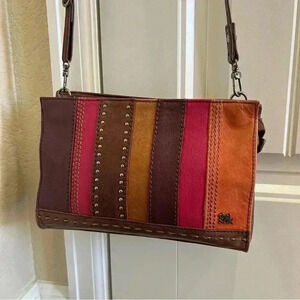 THE SAK Iris Multi Colored Leather 3-way Demi Clutch Crossbody Shoulder Bag. Preowned condition, light normal wear, light wear on corners, pictures provided