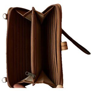The Sak Iris Tobacco Brown Flower Embossed Smartphone Wristlet Wallet is a stylish and functional accessory designed for women on the go. Made of high-quality leather, this wallet features a beautiful flower embossed design in a rich brown color. It includes convenient features such as credit card slots and a checkbook holder, while the wristlet style allows for easy carrying. The Sak brand ensures both quality and a fashionable touch to this practical and versatile accessory. Does not come with shoulder strap!!