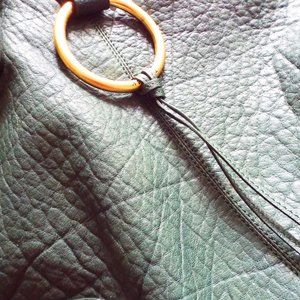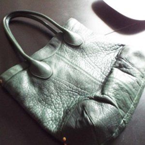 THE SAK PINK LABEL MOSS GREEN THICK LUXURY LEATHER BUCKET POUCH HOBO HANDBAG