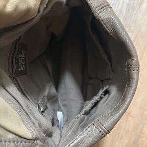 - preowned, great used condition, some wear and fraying around strap and one small red mark on interior