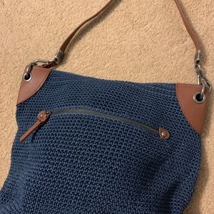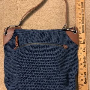 THE SAK navy crochet with leather trim