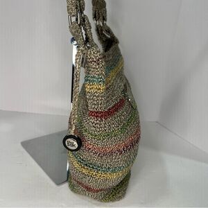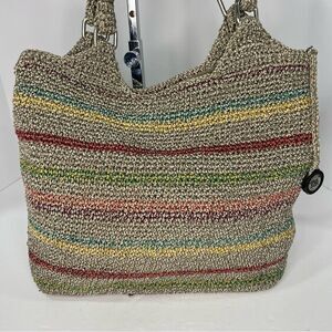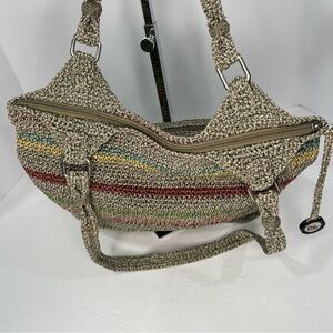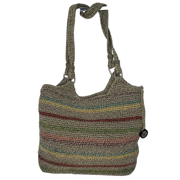 THE SAK Voyager Crochet Gray Stripped Belle Shoulder Tote Bohemian Medium Bag