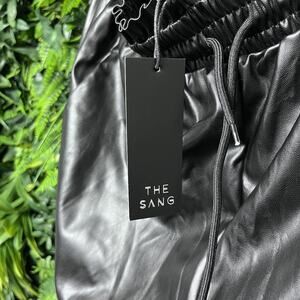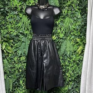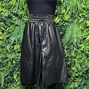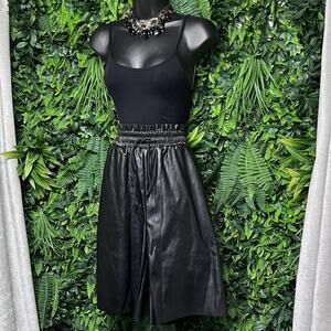 THE SANG Shorts Women Medium Black Faux Leather Smocked Stretch Waist Flare 2709
