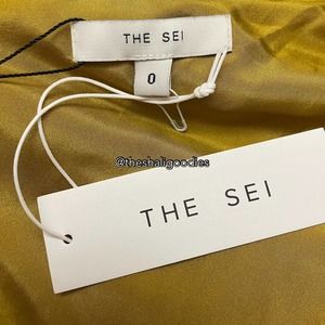 THE SEI Asymmetrical Drape Dress Yellow Silk Midi
