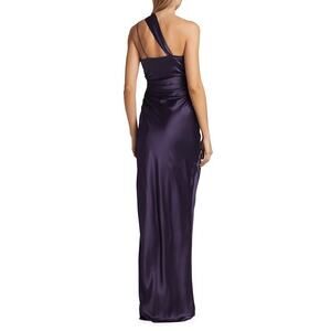 THE SEI Silk Asymmetrical Bandeau One-shoulder Cut Out Gown Fig Purple size 8